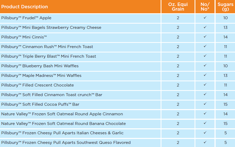 Versatile, 2 oz. equivalent grain options that are easy to menu, easy to prep and easy to serve. In the cafeteria, classroom, or on-the-go, students love these delicious, wholesome, warmable breakfast products.